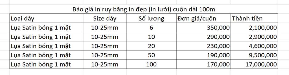 Đồng giá các size dây 1cm - 2.5cm với độ dài cuộn ~91.4, có thể in nhiều size dây, màu sắc dây trong cùng một đơn hàng. Hỗ trợ thiết kế miễn phí và sẵn sàng tư vấn chất liệu sản phẩm.