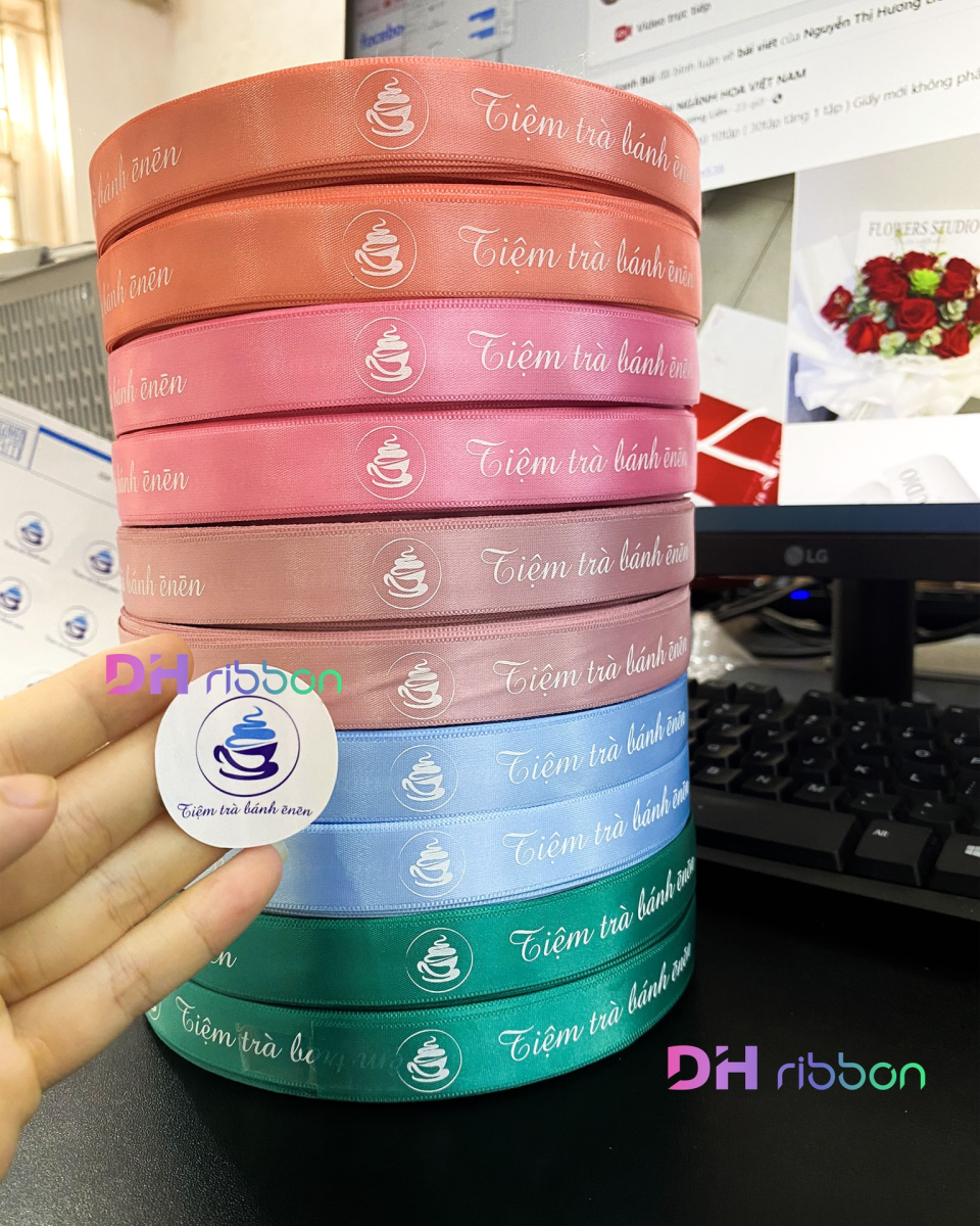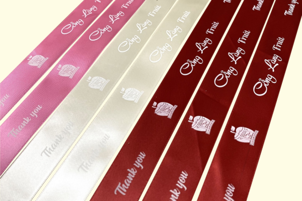 Ruy băng là phụ kiện không thể thiếu của bất kì món quà tặng hay bó hoa nào. Những dải ruy băng in nổi bật tên thương hiệu riêng của bạn vừa độc lạ mới mẻ vừa để lại dấu ấn trong lòng mỗi khách hàng.
