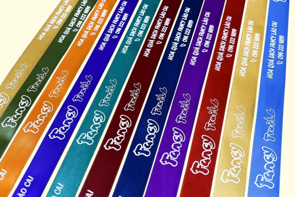 - Dây ruy băng lụa satin in lưới ( in mực ): Với công nghệ in lưới tiên tiến đảm bảo sản phẩm chất lượng, màu mực in sắc nét, không phai màu, không bị loang mờ mực. Có thể in được nhiều màu dây, nhiều size dây trên cùng một đơn đặt hàng.