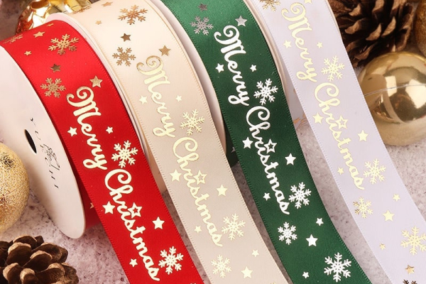Với nhiều họa tiết biểu tượng cho Noel, ruy băng sử dụng công nghệ in lụa hoặc ép kim nổi thể hiện sự cao cấp, sang trọng.